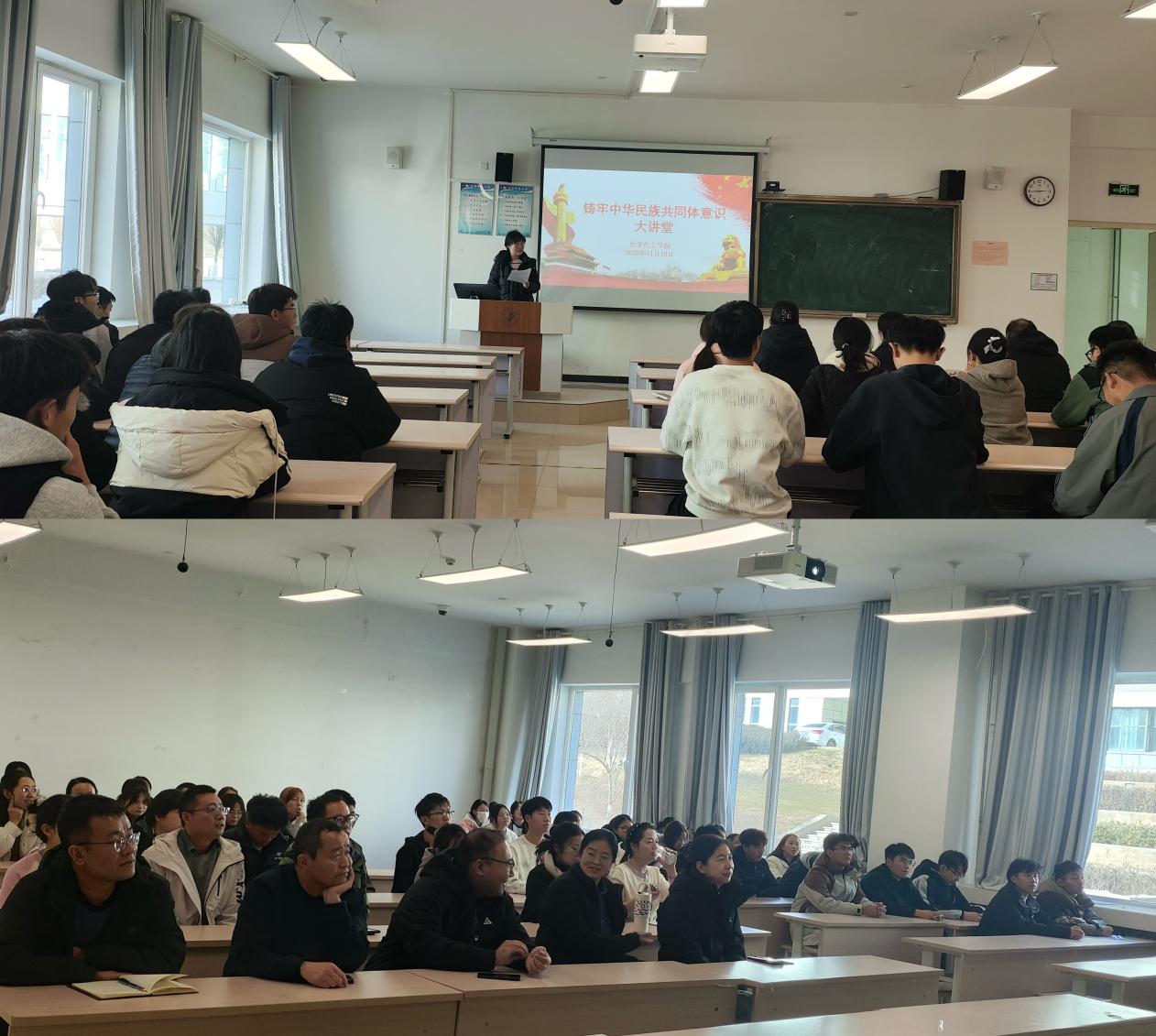 为深入贯彻落实习近平总书记关于民族团结进步的重要论述,凝聚民族团结奋进力量,11月19日,学院党委开展“铸牢中华民族共同体意识”大讲堂活动,组织学院全体教师和2025级新生集中观看纪录片《绽放的花儿》。